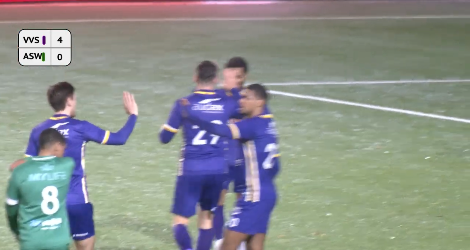 NOORDWIJKERHOUT – VVSB heeft de bij een 3-0 stand gestaakte wedstrijd tegen ASWH uiteindelijk met 4-0 gewonnen. Dinsdagavond werd het restant van de wedstrijd uitgespeeld, en tussen minuut 58 en het einde werd nog één keer gescoord. Nadat in het eerste bedrijf Gyliano van Velzen (2x) en Segun Owobowale scoorden, haalde nu Tim Wolters doeltreffend uit namens de thuisclub. Naast dit verlies liep ASWH ook tegen een schorsing van haar trainer aan.