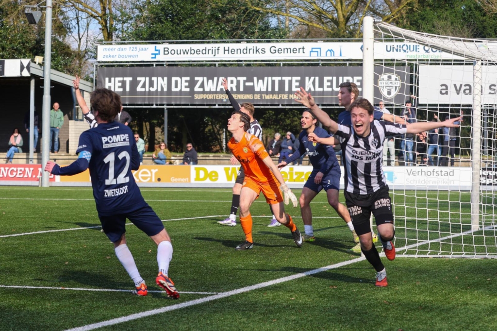 Gemert-trainer Sjoerd van der Coelen kon na afloop leven met het punt. “Als je zo lang knokt om terug te komen en je maakt hem in de eindfase nog de 1-1, dan moeten we absoluut tevreden zijn met het puntje vandaag.” Volgens Van der Coelen was het duel in balans. “In de eerste helft waren wij met momenten beter. In de tweede helft kwamen zij er beter in en kwamen we wat onder druk te staan.”