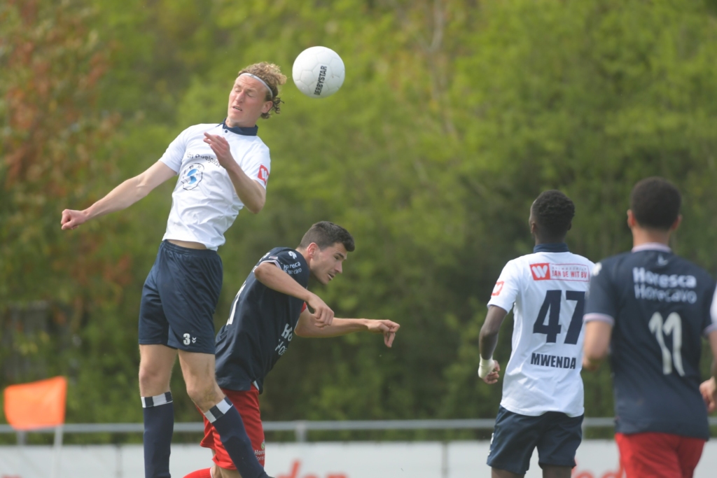 HFC trachtte door de pressing de druk van de eigen verdediging weg te halen. André Morgan en Ruben Heeremans zijn niet de snelste.